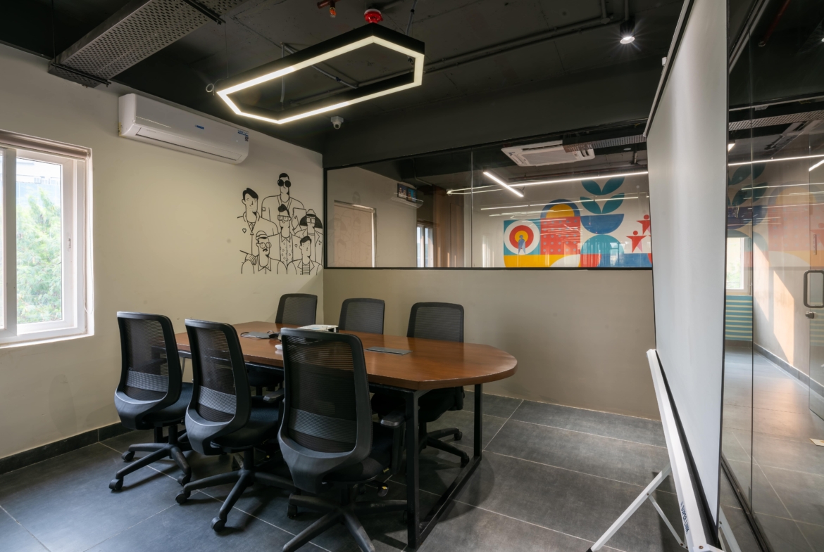 This Serviced Office Space is located in the heart of Kondhapur, Hyderabad. Ever so famous for its ability to provide the right space and mindset for its residents, this space gives the right opportunity to promote ones business and foster the growth and development of their organization. It is well connected by roadways as well as bus transit due to it excellent connectivity. It is the perfect place to collaborate and hold events too. It comes fully equipped with meeting rooms and conference rooms.